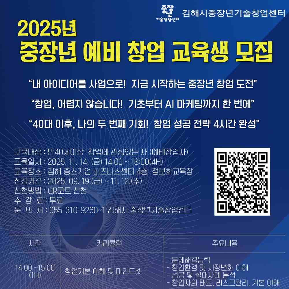 2025년 중장년 Pre-인큐베이팅 창업교육생 모집