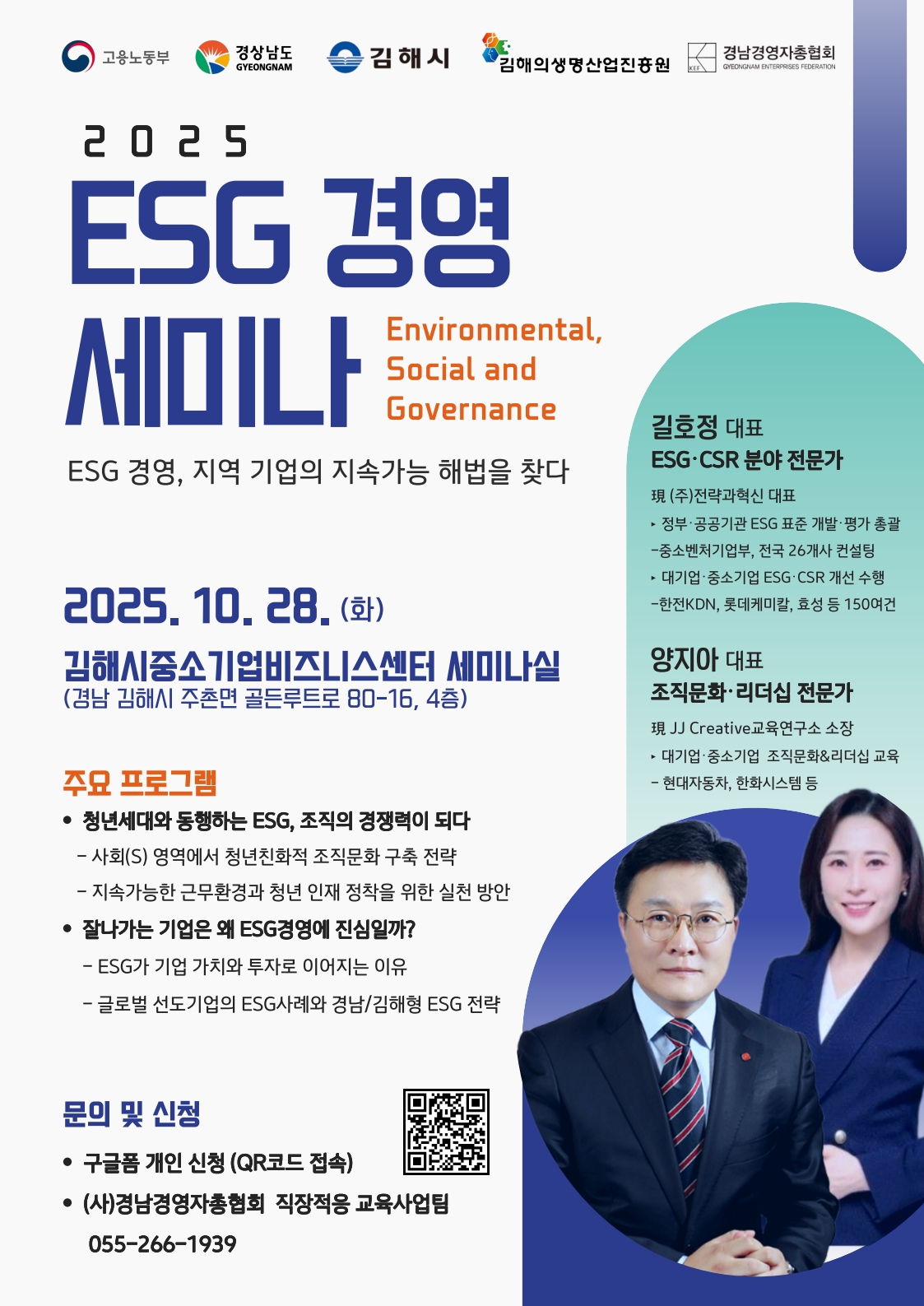 「2025년 김해시 중소기업 지속가능 ESG경영 세미나」교육생 모집