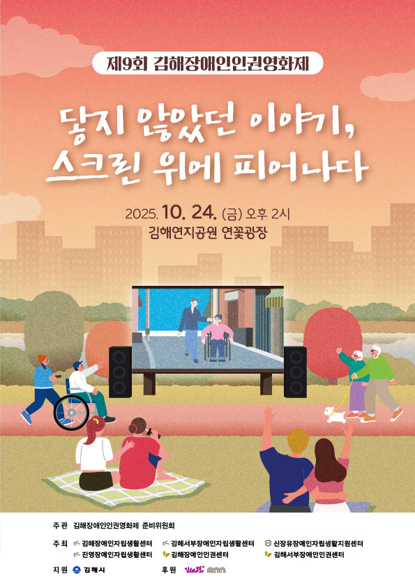 <제9회 김해장애인인권영화제> -닿지 않았던 이야기, 스크린 위에 피어나다. ○일시 : 2025.10.24.(금) 14:00 ○장소 : 김해연지공원 연꽃광장 ○상영작 : 「마루와 내 친구의 결혼식」,「천사와 드라이브」 |
