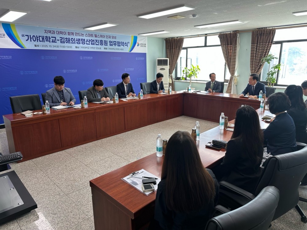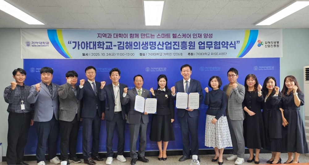 [2025. 10. 24.] 김해의생명산업진흥원-가야대학교 업무협약 - 스마트 헬스케어 인재양성과 지역기업 역량강화를 위한 업무협약(MOU) 체결 - 경남 RISE 연계 산학협력 플랫폼 구축 - 실습·인턴십-공동연구-취업연계로 지역 정주 생태계 강화 |